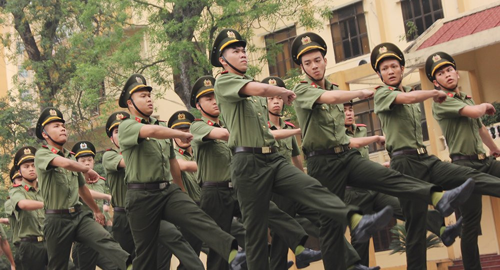 Các học viên Lào tại Học viên An ninh nhân dân cũng có màn duyệt đội ngũ đều răm rắp.