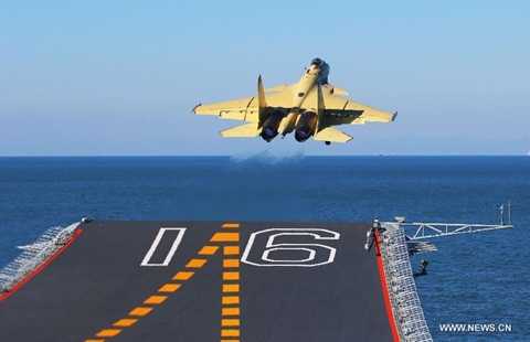 Ảnh: Máy bay tập dượt trên tàu sân bay Trung Quốc
