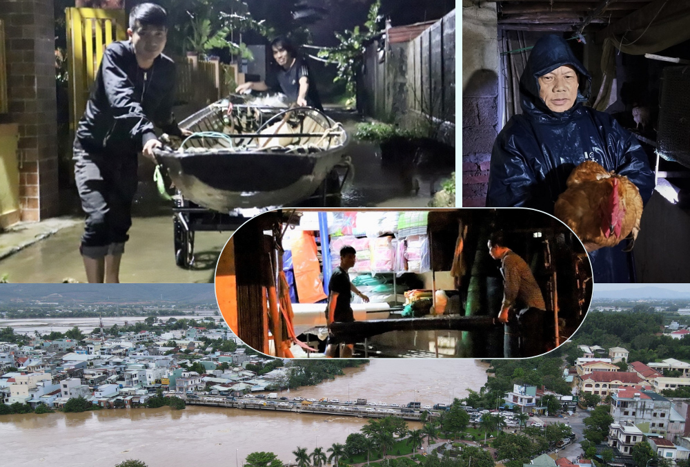 Tối 17/10, tại xã Cẩm Thành, huyện Cẩm Xuyên, Hà Tĩnh, trong căn nhà nhỏ, gia đình ông Nguyễn Hữu Thắng tất bật thu dọn đồ đạc, bắt gà vịt nhốt lên cao nhằm chuẩn bị ứng phó khi nước lũ dâng. (Ảnh: Trọng Tùng)