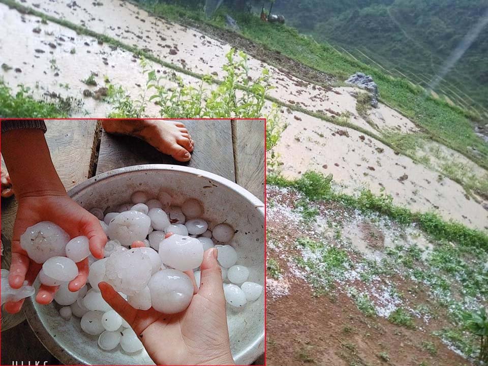 Tối 26/4, trả lời VTC News, chị Nguyễn Nhuần ở xã Nậm Ban (Mèo Vạc, Hà Giang) cho biết vào khoảng hơn 16h hôm nay, tại khu vực này đã xảy ra mưa đá có kích cỡ lớn, to như quả trứng gà.