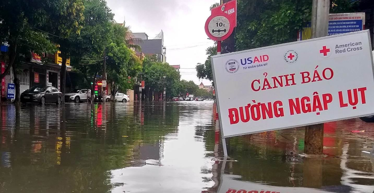Ngày 18/9, Hà Tĩnh xuất hiện mưa lớn kéo dài trong nhiều giờ khiến các tuyến đường Hải Thượng Lãn Ông, Lý Tự Trọng, Nguyễn Du, Nguyễn Công Trứ,… bị ngập sâu. (Ảnh: Phan Ấn)