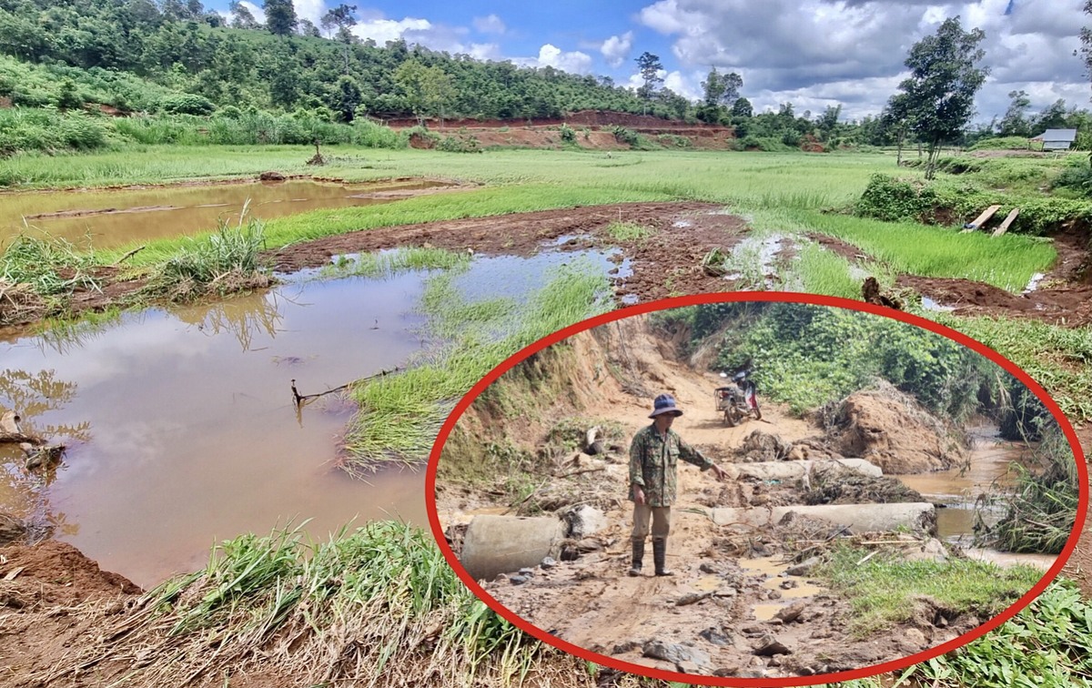 Ngoài thiệt hại về hoa màu, một số đoạn đường giao thông trên địa bàn xã cũng bị sạt lở nghiêm trọng khiến việc đi lại của người dân gặp nhiều khó khăn.