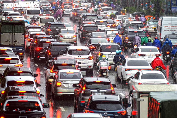 Các phương tiện xếp kín đường, di chuyển rất khó khăn. Hình ảnh ghi nhận tại đường Nguyễn Xiển lúc 8h.