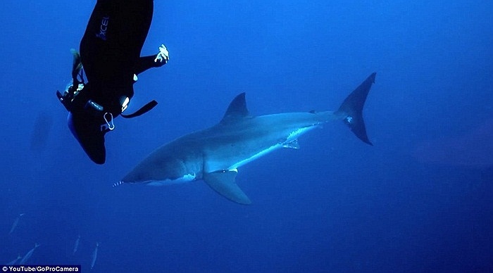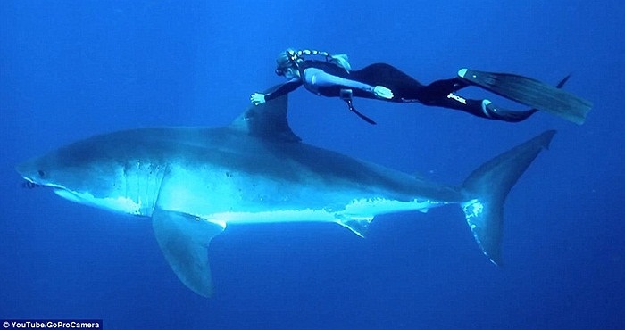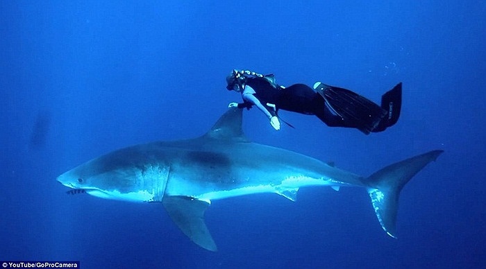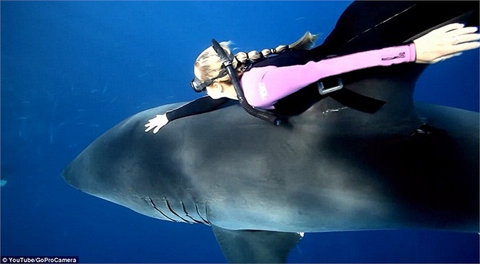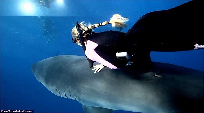 Ảnh: Mỹ nữ cưỡi cá mập như cưỡi ngựa dưới đáy biển