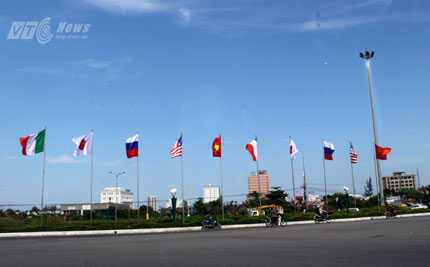 | Cờ các quốc tham dự DIFC 2013 đã được kéo lên tại các vị trí trang trọng |