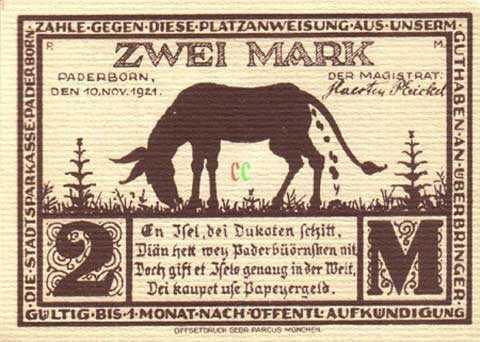 Sau chiến thanh thế giới thứ nhất, vấn đề quan trọng là phát hành đồng tiền khẩn cấp tại Đức và Áo. Đây có thể là đồng tiền kỳ lạ nhất thế giới do in hình con lừa.