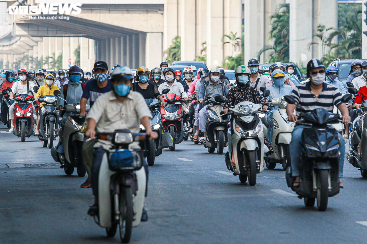 Hôm nay cũng là ngày đầu tiên các cơ quan, doanh nghiệp ở Hà Nội cho nhân viên đi làm trở lại khiến lượng xe cộ tăng cao, cuộc sống lại hối hả như trước giãn cách xã hội.