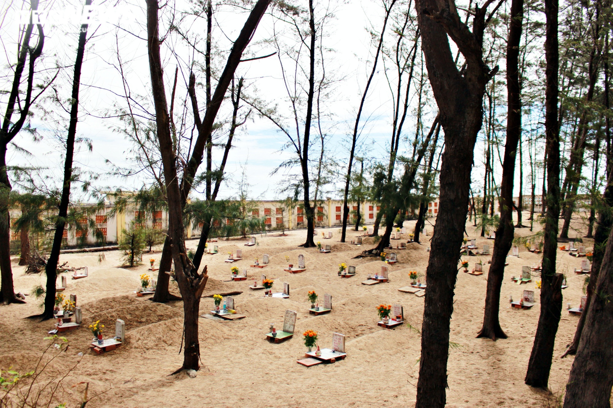 Nghĩa địa rộng 2.000m2, được chia ra thành 5 khu vực, trong đó mỗi khu có khoảng 67 ngôi mộ cá Ông (cá voi).