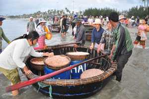 “Lộc biển” đầu năm Quý Tỵ của ngư dân làng chài nơi đây là hàng tấn ruốc tươi được hàng trăm ghe thuyền của ngư dân đưa vào bờ.