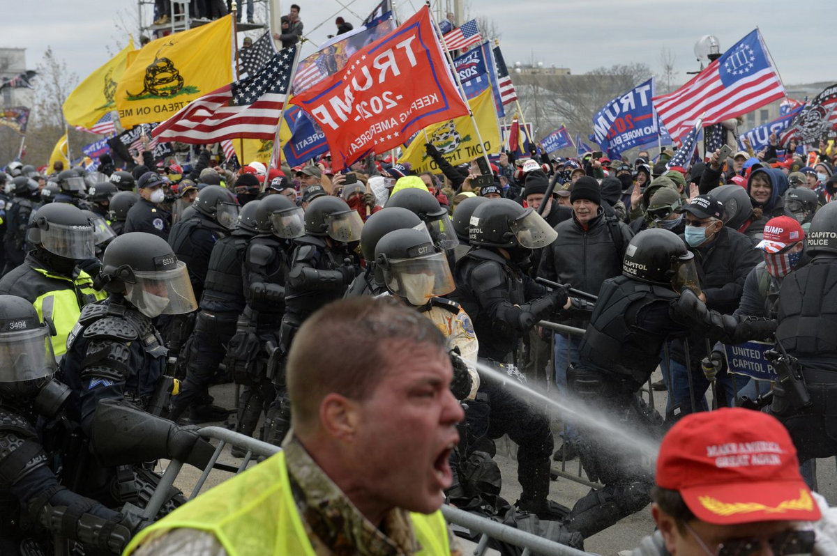 Lực lượng bảo vệ điện Capitol buộc phải sử dụng đạn hơi cay để giải tán đám đông bên ngoài. (Ảnh: New York Times)