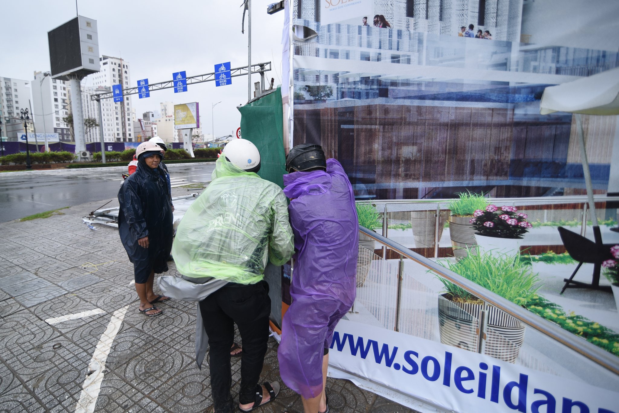 Nhiều khách du lịch vẫn muốn ra ngoài dù trời vẫn mưa to và gió mạnh.