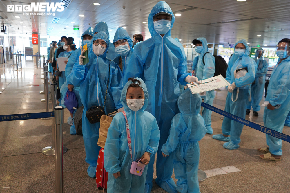 Ghi nhận của PV VTC News, người dân đến sân bay Tân Sơn Nhất đều trang bị áo quần bảo hộ, tuân thủ các quy định bắt buộc về phòng chống dịch. Họ là sinh viên, người bán vé số, công nhân thất nghiệp, lao động tự do... gặp khó khăn do dịch bệnh, bị mất việc, giảm thu nhập, muốn trở về quê.