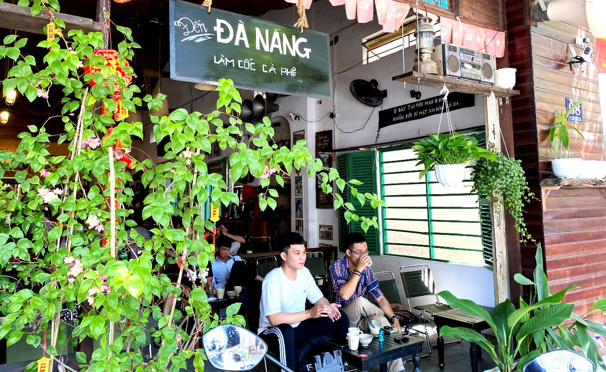 Các quán cà phê trên địa bàn Đà Nẵng ngày cuối tuần khá đông khách khi nhiều gia đình, nhóm bạn bè tranh thủ ngày nghỉ vui chơi, xả stress sau thời gian dài thành phố áp dụng biện pháp cách ly xã hội theo Chỉ thị 16 để phòng, chống dịch.