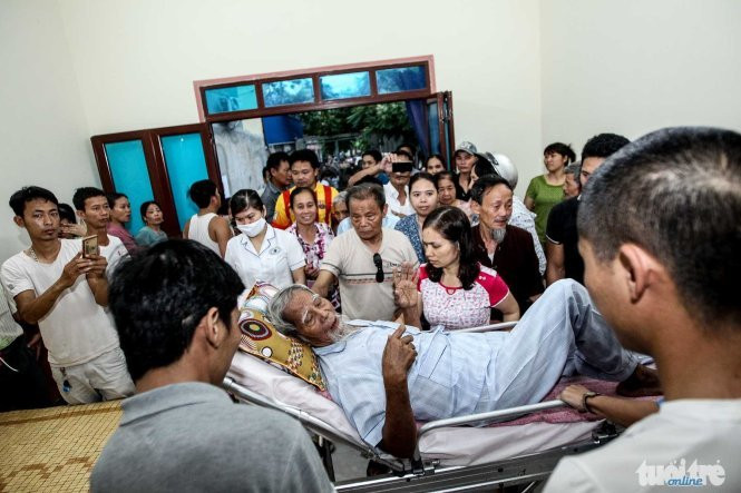 Bệnh viện Việt Đức cho biết Trung tâm vận chuyển cấp cứu thành phố Hà Nội đã chuẩn bị xe để đưa cụ Kình về Đồng Tâm. Trong ảnh: Đại diện người dân Đồng Tâm gửi lời cảm ơn đại diện bệnh viện đã chăm sóc cho cụ. (Ảnh: Nguyễn Khánh)