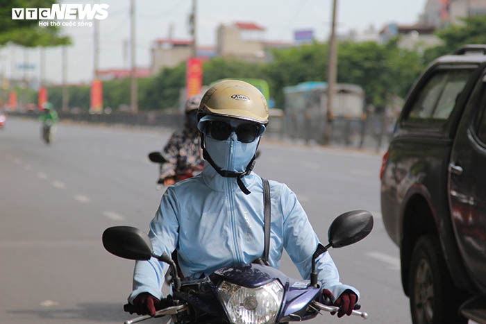 Khi tham gia giao thông, người dân phải mặc đồ bảo hộ chống nắng nóng.