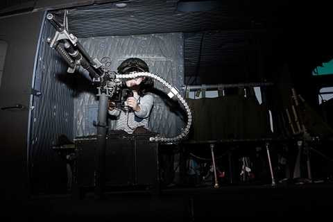 Bé gái đặt tay vào cò khẩu súng máy, bà cụ đang chăm chú nhìn vào ống ngắm của súng trường hay đám đông mê mẩn với những màn không kích giả định.