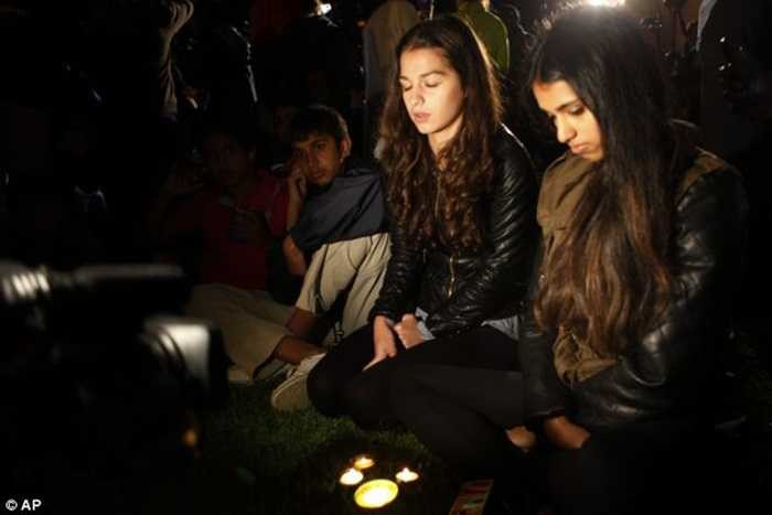 Hai cô gái cầu nguyện bên ngoài nhà riêng cố tổng thống Nelson Mandela