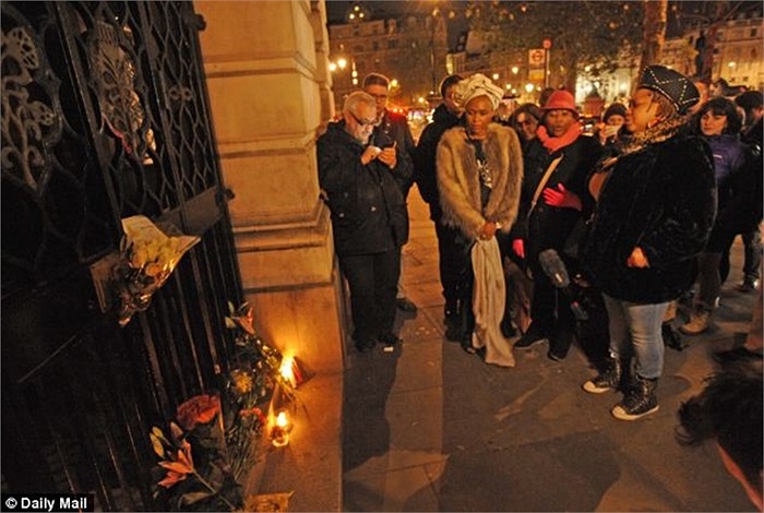 Hoa, nến tưởng niệm cố tổng thống Nelson Mandela bên ngoài Quảng trường Trafalgar ở London
