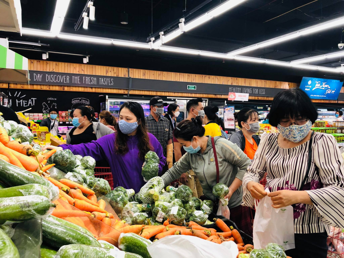 Chị Nguyễn Thị N. cho biết, đang ở siêu thị thì thấy đông người đổ xô vào. "Thành phố không bắt siêu thị, chợ đóng cửa và cũng đâu cấm người dân đi chợ. Mọi người đổ xô đến siêu thị, đến cửa hàng chẳng khác nào tập trung đông người, không nên dự trữ, mình không thiếu lương thực", chị N. nói.