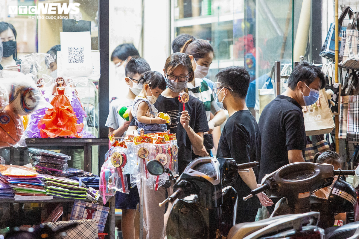 “Năm nay, do dịch bệnh nên Hàng Mã không còn là nơi vui chơi cũng như mua sắm của nhiều ông bố bà mẹ. Vì thế tôi dẫn cháu ra cửa hàng mua vài món đồ”, chị Đặng Bích Trang (32 tuổi, trú tại Cầu Giấy) cho biết.