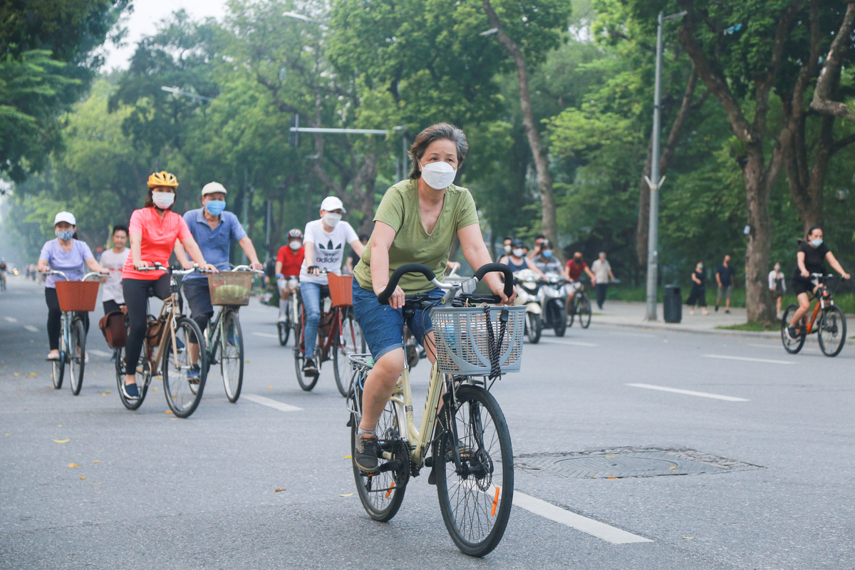 “Sáng nay, tôi dậy từ 5h sáng để ra ngoài đạp xe, hít thở không khí trong lành. Thời gian qua, không được thể dục thể thao, tôi thấy trong người khó chịu, bí bách lắm. Mong dịch qua nhanh để nhịp sống của người dân trở lại bình thường”, ông Đặng Anh Trung (quận Hoàn Kiếm) chia sẻ.