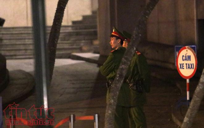 Càng về đêm, nhiệt độ càng xuống thấp. Các chiến sĩ công an làm nhiệm vụ bảo vệ kiên cường chống chọi với giá lạnh.