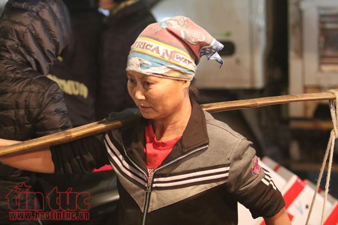 Chợ đầu mối Long Biên khi về khuya càng nhộn nhịp, tấp nập.