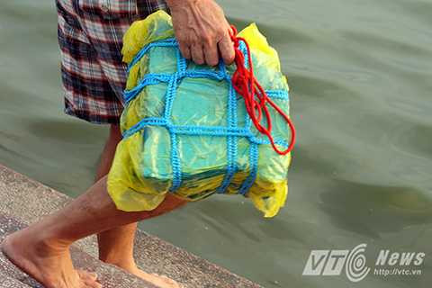 | Mang theo cả phao xuống nước. |