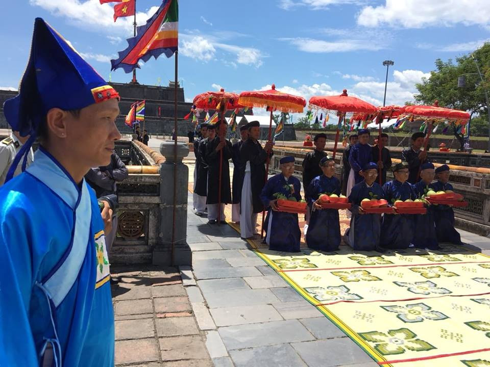 Hàng loạt các nghi lễ trang trọng được tổ chức tại cửa Ngọ Môn Huế trước khi quả Thanh Trà được mang vào Đại Nội tiến vua. (Ảnh: Bảo Minh)