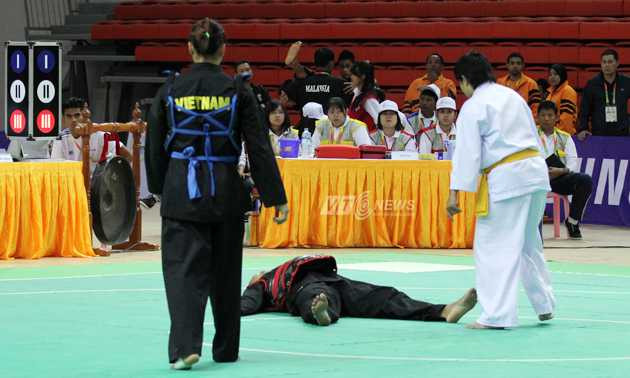 (VTC News) – Nguyễn Thị Yến đã xuất sắc giành HCV hạng cân 75kg môn Pencak Silat sau khi võ sĩ người Indonesia nằm sân vì choáng và phải bỏ cuộc.