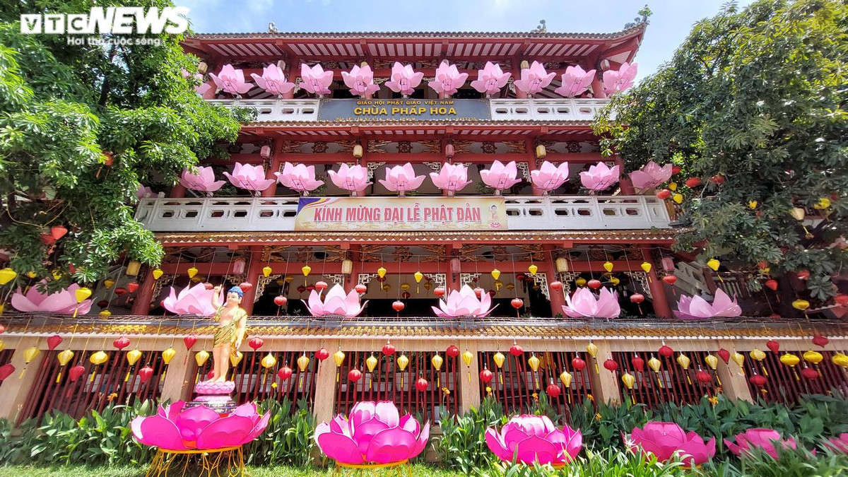 Tương tự, chùa Pháp Hoa nằm trên đường Trường Sa, quận 3 cũng đã hoàn thành mọi công tác phục vụ cho đại lễ Phật đản sắp tới. Tối nay 12/4 Âm lịch (ngày 12/5), chùa sẽ tổ chức thả hoa đăng.