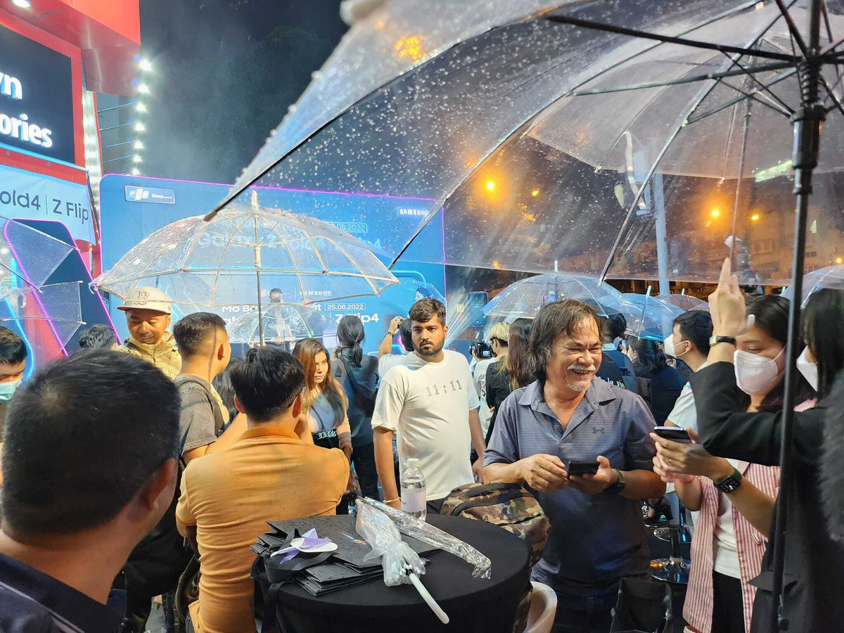 Theo thông báo sau khi ra mắt sản phẩm, thời gian giao Samsung Galaxy Z Fold4 và Z Flip4 dự kiến tại Việt Nam là ngày 26/8. Tuy nhiên từ tối 25/8, nhiều đại lý phân phối chính hãng mở bán sớm cho những khách hàng đặt trước bộ đôi này. Cơn mưa tại TP.HCM không ngăn được những người quan tâm có mặt tại cửa hàng trước giờ mở bán chính thức sản phẩm.