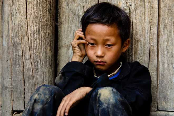 Một bé trai người Mông ở Sủng Là, Hà Giang, bị gia đình bắt phải chụp hình với khách du lịch nhưng em không thích và ngồi buồn bên hiên nhà. Từ khi du lịch phát triển, Sủng Là nườm nượp khách ghé thăm. Một số em nhỏ bị gia đình bắt phải đi theo du khách để xin tiền hoặc đòi tiền chụp ảnh cùng.