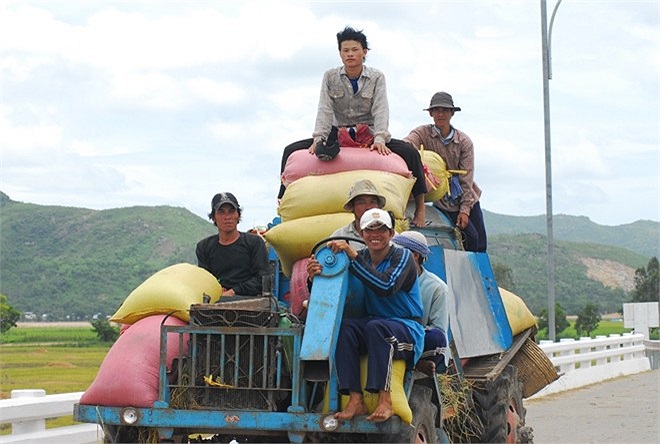 Ngồi chồm hổm trên xe để chồng chở về nước.