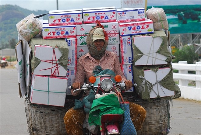 Bên dưới chở hàng, bên trên cổ tài xế là... người.