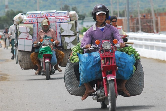 Chiếc xe Honda của thương buôn Campuchia qua Việt Nam mua hàng chở được gần 1.000kg, còn xe thồ tự chế có thể tải đến... 10 - 15 tấn.