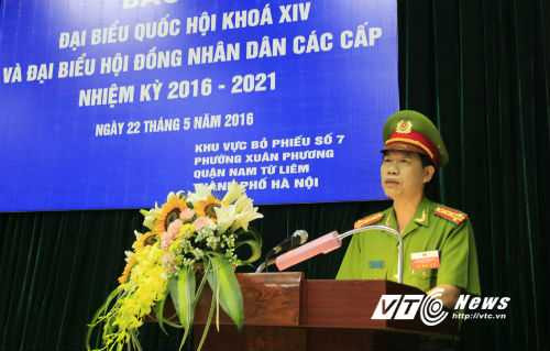 Đáng chú ý, Thiếu tướng Đoàn Duy Khương - Giám đốc Công an TP Hà Nội đã thực hiện quyền công dân của mình tại tổ bầu cử này. Đúng 7h, sau lễ khai mạc, Thiếu tướng Đoàn Duy Khương là người đầu tiên bỏ phiếu bầu cử.