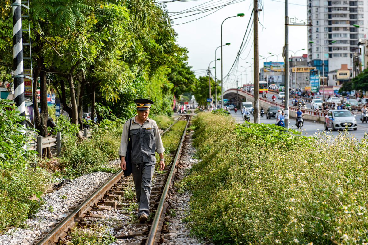 Ông Đỗ Văn Long, 49 tuổi, nhân viên Xí nghiệp vận tải đường sắt Hà Hải bên cầu Long Biên, cũng là nơi làm việc hàng ngày của ông suốt 29 năm qua. Công việc của ông Long là kiểm tra, phát hiện và xử lý các hư hỏng, chướng ngại để đảm bảo an toàn chạy tàu trong phạm vi địa giới được phân công.