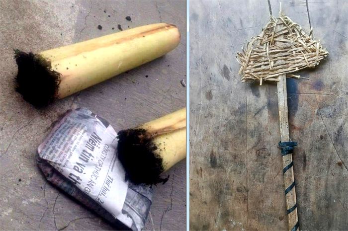 Học trò lứa 6X, 7X, 8X đời đầu mỗi lần đến phiên trực nhật thường phải chuẩn bị hai thứ này. Đó là một đoạn thân cây chuối non đập tòe một đầu, nhúng vào nhọ nồi hoặc than củi nghiền nhỏ, dùng để lau bảng. Bảng đen phấn trắng nếu không được "refresh" bằng nhọ nồi thì sẽ lem luốc, trò sẽ không nhìn rõ thầy viết gì lên bảng.
