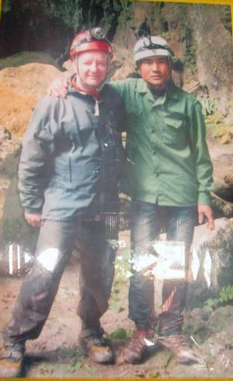 | Bức ảnh chụp kỉ niệm giữa anh và chuyên gia hang động Hoàng gia Anh Howard Limbert |
