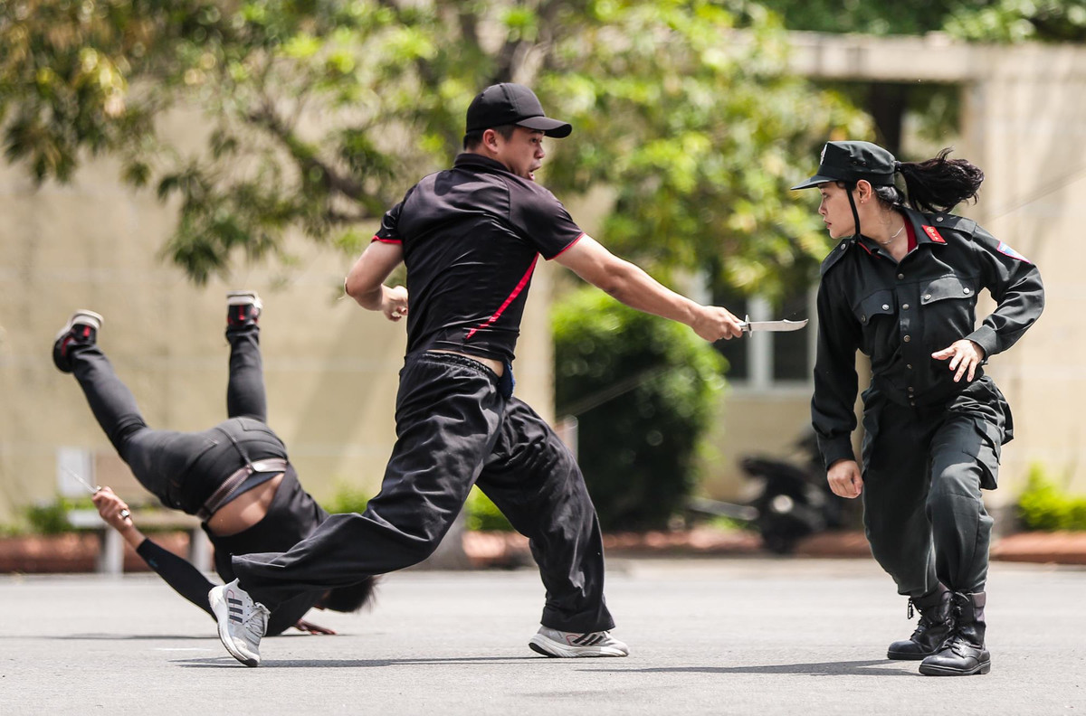 Nữ cảnh sát đặc nhiệm diễn tập tình huống đối đầu với 3 tên côn đồ có vũ khí. Bằng việc vận dụng những môn võ đã học như Karate, Teawkondo, Vovinam, nữ cảnh sát đã tránh né, tước vũ khí và hạ gục từng đối tượng.