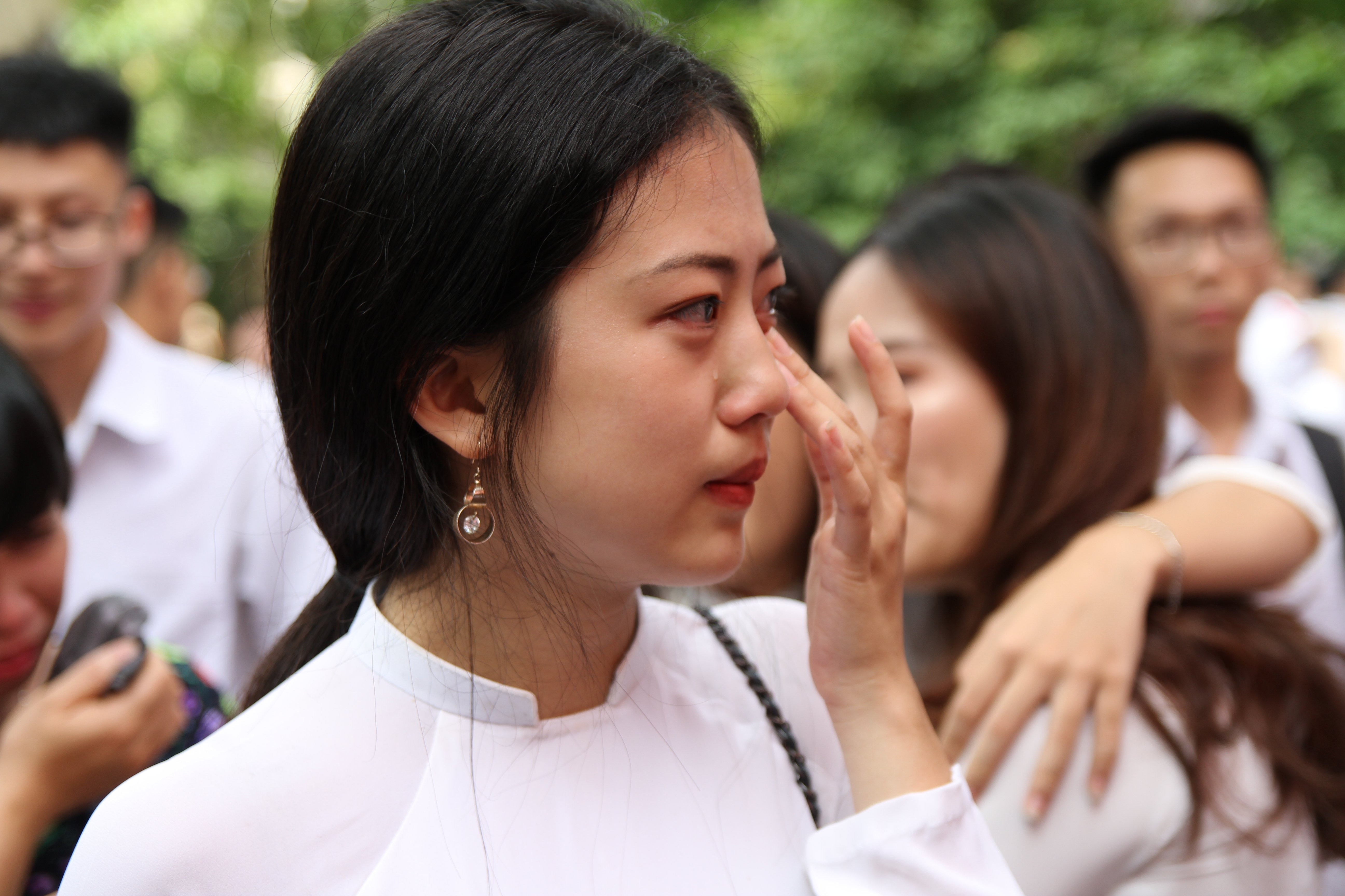 Một vài nữ sinh không kìm được giọt nước mắt khi sắp phải xa trường, lớp và thầy cô.