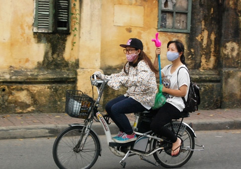 Nữ sinh đầu trần đi xe đạp điện vi vu trên phố...