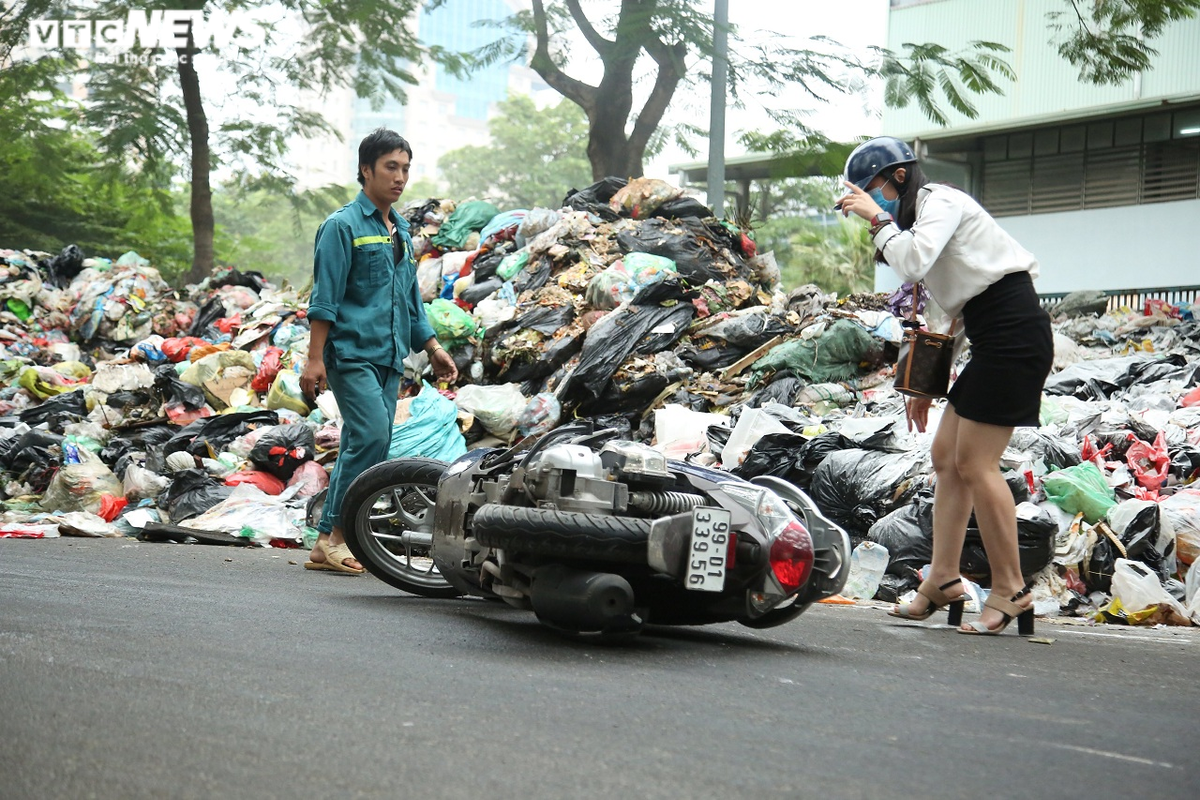 Người đi đường bịt mũi vì mùi hôi thối bốc ra từ núi rác.