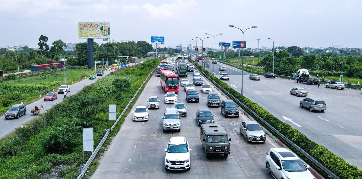Sáng 30/4, lưu lượng phương tiện quá đông khiến tuyến cao tốc Pháp Vân - Cầu Giẽ ùn tắc dài.