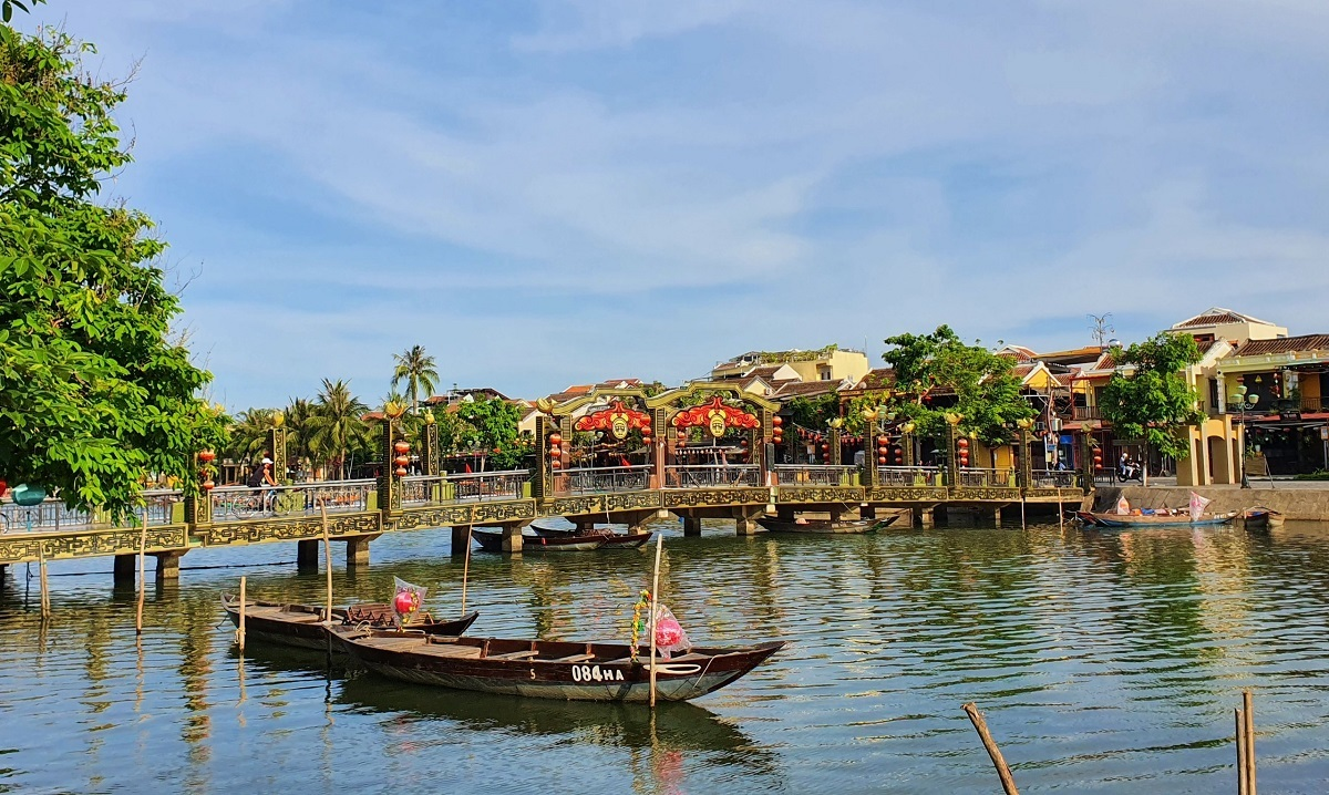 Cầu An Hội nối đôi bờ sông Hoài, nằm ngay trung tâm phố cổ, vốn thu hút rất đông du khách dạo bước nhưng bây giờ vắng hoe bóng người.