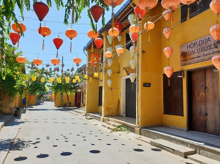 Nhiều tuyến đường chính trong khu phố cổ vốn dập dìu du khách tản bộ tham quan như: Nguyễn Thái Học, Trần Phú, Lê Lợi, Nguyễn Thị Minh Khai..., nay trở nên vắng ngắt.