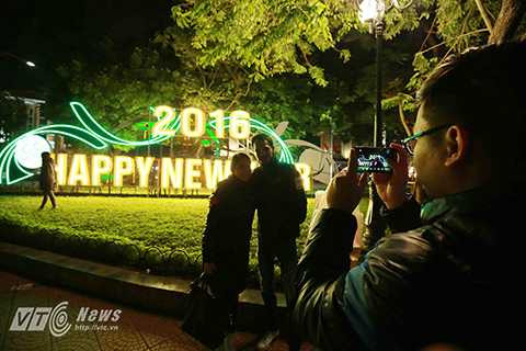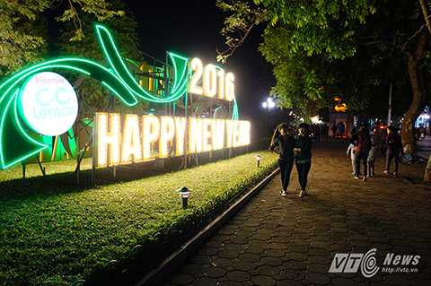 | Dọc khu vực hồ Gươm, rất nhiều tấm pano, biểu ngữ mang nội dung chào đón năm mới đã được dựng lên. |