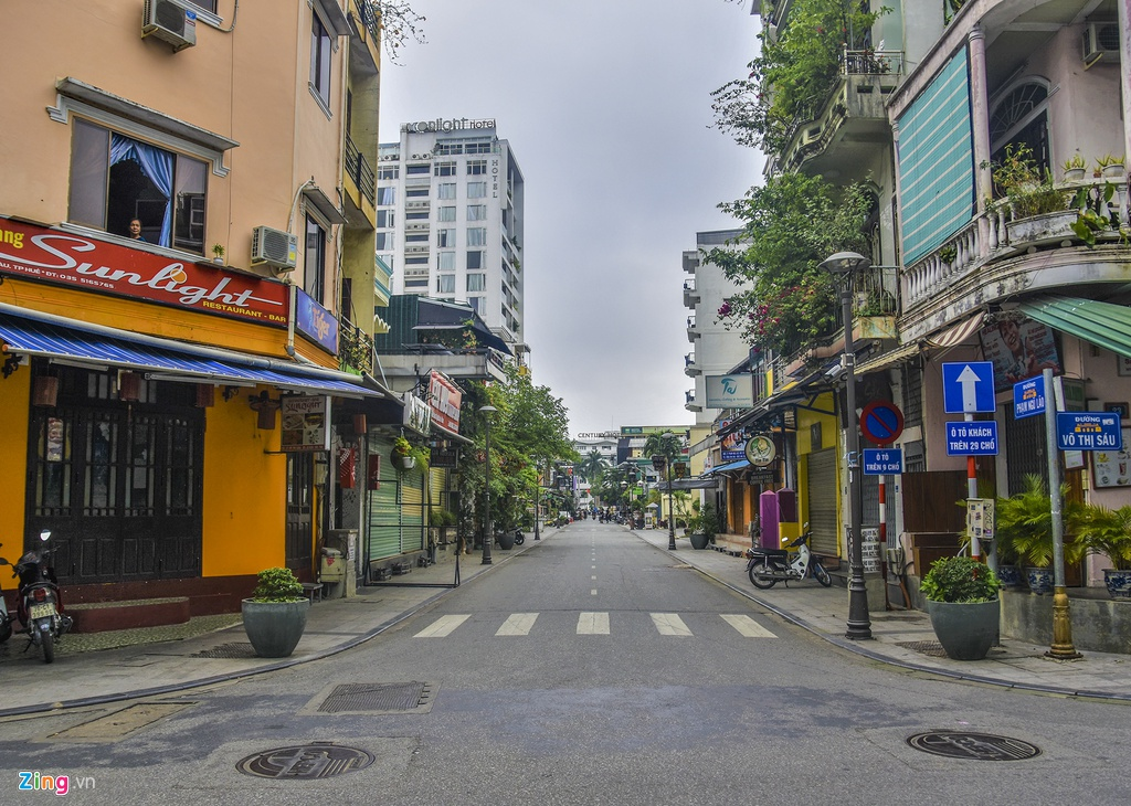 Những dãy phố có nhiều khách sạn này thường là điểm lưu trú lý tưởng mà du khách nước ngoài khi đến Huế du lịch lựa chọn. Tuy nhiên, khi có dịch Covid-19, việc phòng dịch được triển khai khiến khu vực này vắng bóng người cả ngày lẫn đêm.