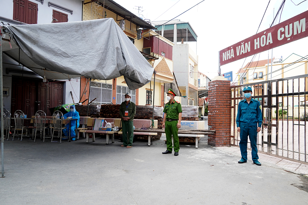 2 chốt chặn ở 2 vị trí trọng điểm có ca dương tính luôn có lực lượng công an chính quy, dân phòng, y tế và dân quân tự vệ túc trực, kiểm soát 24/24.